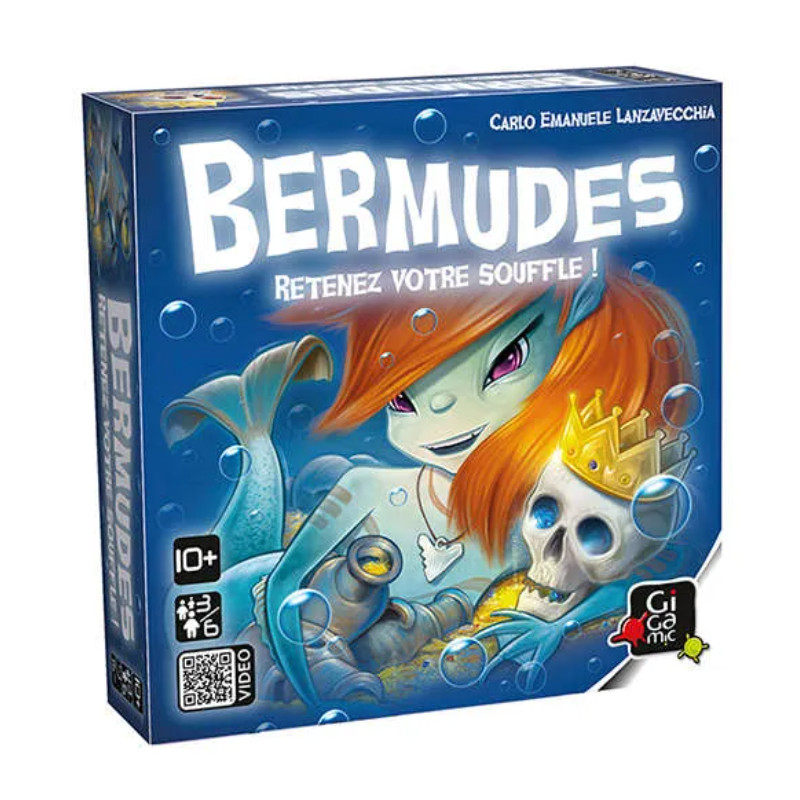 Au signal les joueurs commencent à retenir leur respiration et peuvent alors poser des cartes pour essayer de récupérer des trésors.Mais dès qu’un joueur reprend son souffle la manche s’arrête et on fait les comptes ! Si vous n’avez pas rempli les conditions requises par un trésor, c’est la vilaine sirène qui le récupère ! Après 5 manches, si les joueurs cumulent plus de trésors que la sirène, ils gagnent.Bermudes est un jeu hors du commun, où la plus grande difficulté sera de parvenir à rire sans respirer !Les règles en vidéo:https://youtu.be/oFbOPpczLy4