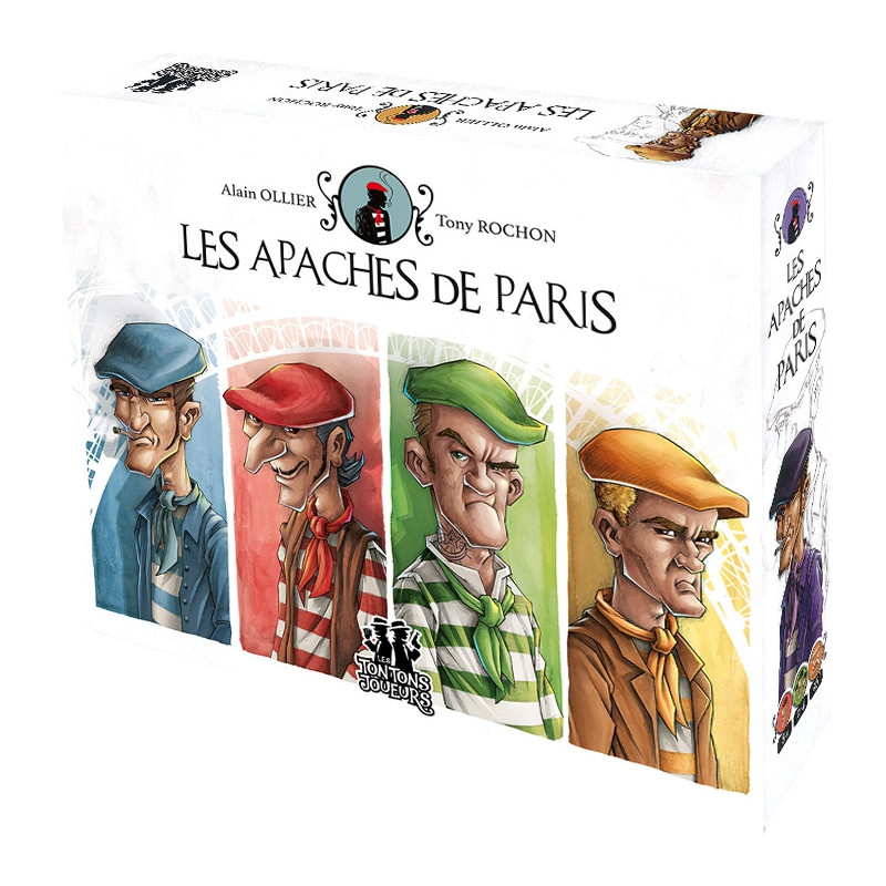 Début du 20ème siècle… Issus des faubourgs de Paris, dans un contexte économique et social catastrophique, sans éducation et livrés à eux-mêmes, des jeunes liés par leur quartier d’origine se regroupent pour créer les gangs de Ménilmontant, de Montmartre ou d’ailleurs… Ils sont appelés « Les Apaches de Paris » en référence aux Apaches de Geronimo.Vous dirigez un gang « d’Apaches » et devez devenir maître de lieux pour vous enrichir. Placez ou déplacez vos Apaches et malgré vos incertitudes, imposez votre stratégie grâce aux informations dévoilées progressivement par chaque joueur. Trouvez les « planques » les plus lucratives mais attention aux pièges, aux bandes rivales et aux sergents de ville.Les points forts du jeu sont :Accessible et très stratégiqueGrande profondeur de jeu et rejouabilitéTension et prise de risque à chaque coup jouéLes explications des règles en vidéo:https://youtu.be/qf_wsPB–98