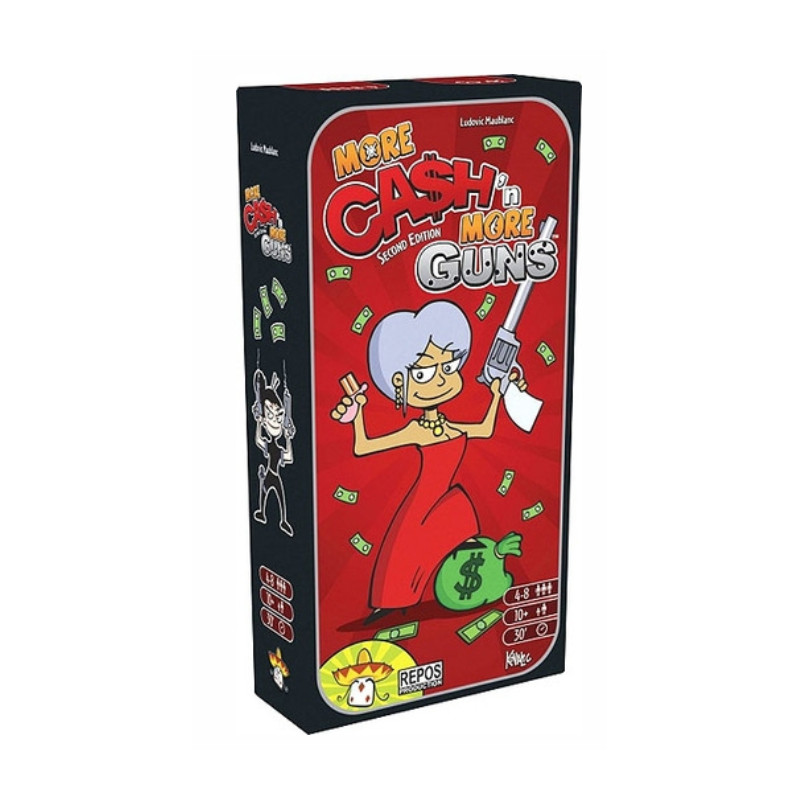 Des p’tits trous, des p’tits trous, partout des p’tits trous ! Le partage du butin, vous connaissez. La banque a sauté, vous êtes réunis entre braqueurs, l’argent devant vous, reste LA question : qui aura quoi ? Forcément, on ouvre le feu, ça défouraille à tout-va, rien ne va plus.Ça, c’était avant. Avec l’extension More Cash & Guns, le partage change radicalement ! Trois nouveaux pouvoirs peuvent faire la différence : le Big Gun, pour de plus gros trous, la Brute, pour encaisser comme pas deux, les Twin Guns, pour faire pleuvoir deux fois plus de plomb (ou pas : l’un est chargé à blanc).Ajoutez à cela les combinaisons du coffre-fort, enfin dévoilées et qui permettent au Parrain d’arroser (d’argent !) son bras droit, 16 cartes surprises, une fausse toile de maître, de faux billets, de faux diamants, la Valise-bourrée-de-biftons… Et vous aurez une idée de ce que fusillade, trahisons et alliances signifient vraiment !Une présentation en images:https://youtu.be/Rs0-c_t8pzA