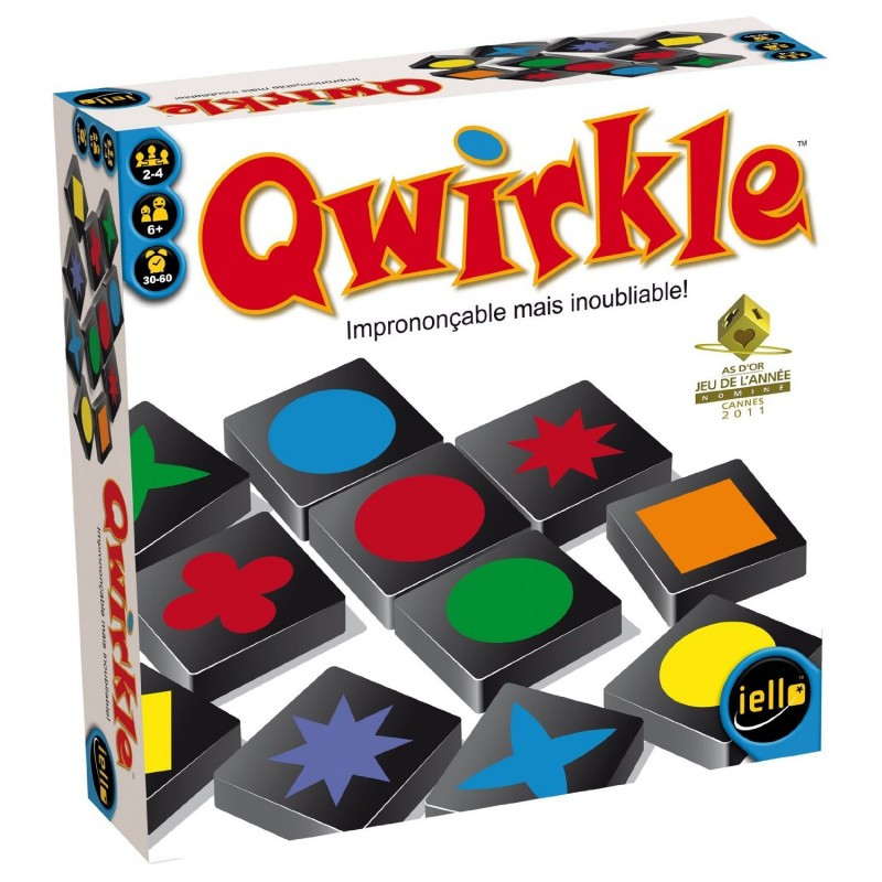 Quelques secondes suffisent pour apprendre à jouer à Qwirkle ! Le but : associer des tuiles de formes ou de couleurs identiques. Mais si les règles sont simples, la victoire passe par une audace tactique et une stratégie bien élaborée.Les règles expliquées en 30 secondes :- Le but : réaliser des lignes de tuiles ayant la même forme ou la même couleur (par exemple, une ligne de tuiles jaunes ou une ligne de tuiles carrées).- Chaque joueur commence en piochant 6 tuiles au hasard.- On peut jouer autant de tuiles que l’on veut dans une ligne (1, 2 voire 6 tuiles d’un coup). – On en repioche autant que nécessaire pour avoir toujours 6 tuiles.- A chaque coup, le joueur marque autant de points qu’il y a de tuiles dans la ligne (par exemple, si je joue la 3ème et la 4ème tuile dans une ligne, je marque 4 points).- Compléter une ligne de six tuiles rapporte 6 points plus un bonus supplémentaire de 6 points (soit 12 points !). – Quand une tuile complète deux lignes (une horizontale et une verticale), on marque les points dans les deux sens.- Celui qui a le plus de points à la fin de la partie a gagnéA vous de jouer !Vous avez une tuile Rond bleu et une tuile Carré violet devant vous. C’est à vous de jouer.Si vous jouez le Rond bleu à gauche du Rond rouge, vous marquerez 2 points (2 tuiles dans la ligne).Si vous jouez le Carré Violet à gauche du Carré rouge ou à droite du Carré bleu, vous marquerez 3 points (3 tuiles dans la ligne).Mais si vous jouez le Rond bleu à droite du Rond rouge (et donc au-dessus du Carré bleu), vous marquerez 4 points (il y a 2 tuiles dans la ligne de ronds et 2 tuiles dans la ligne bleue).Qwirkle se compose de 108 tuiles en bois avec 6 formes de 6 couleurs différentes. Chaque joueur essaye de marquer le maximum de points en constituant des lignes de tuiles ayant une couleur ou une forme en commun.Une démo rapide:https://youtu.be/9Fn0m4ic0Pg