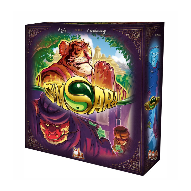 Dans les religions orientales, le Samsāra représente le cycle des renaissances successives. On naît, vit, meurt, puis renaît jusqu’à ce que l’on puisse atteindre le Nirvāna et être libéré des existences successives.Dans le jeu Samsara, votre personnage va vivre de multiples existences, durant lesquelles vous choisirez de mettre l’accent sur différentes étapes : son enfance, son couple, l’expérience de la mort…Ces choix vous permettront d’enrichir son âme, d’améliorer son karma. Par vos actions, vous accumulerez également du bon et du mauvais karma, qui influera sur vos capacités. Si vous êtes le premier à récupérer cinq Amulettes d’Éternité, vous atteindrez le Nirvana et remporterez la partie.Concrètement, Samsara utilise le principe du deck-building, couplé à un système de déplacement de pion. À chaque tour, vous récupérez une carte action, que vous ajoutez à votre main. Ces cartes servent à la fois à jouer des actions (piocher, récupérer d’autres cartes, etc), et à acheter les Amulettes d’Éternité, qui constituent le but du jeu. Certaines actions permettent également de récupérer des cartes bon karma : elles servent de joker pour les achats des Amulettes d’Éternité.Dans Samsara, tout comme dans la vie, il y a souvent plusieurs moyens d’effectuer une action : une bonne et une mauvaise. La bonne est moins efficace, mais ne salit pas votre karma. La mauvaise sera plus simple mais vous obligera à prendre des cartes mauvais karma. Ces cartes sont des malus encombrants, et il est très difficile de s’en débarrasser.Les règles en vidéo:https://youtu.be/MRnWfQAed_s