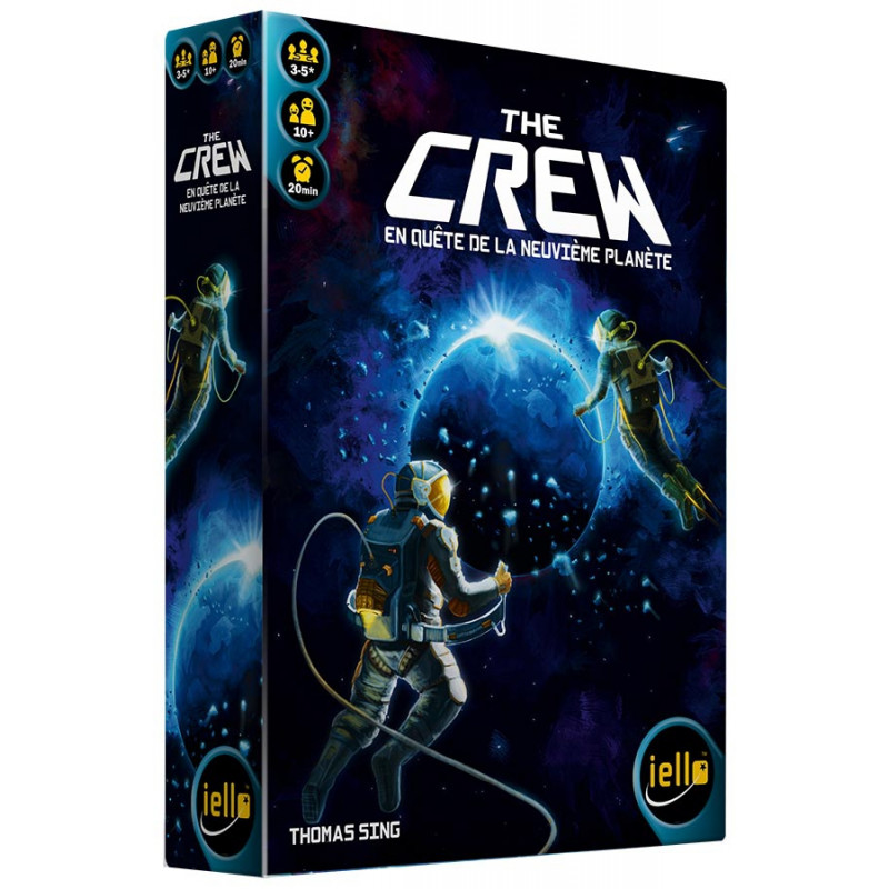 Dans The Crew, vous incarnez les membres d’un équipage spatial en voyage vers une mystérieuse planète. Le chemin pour y parvenir ne sera pas de tout repos, puisque vous aurez 50 missions à accomplir avant de pouvoir atteindre votre destination finale.Comment marche une mission ?Pour remporter une mission dans The Crew, vous devez tous ensemble accomplir les tâches qui vous sont assignées. Chaque joueur dispose de tâches qui lui sont propres. Pour les accomplir, il faut jouer une carte à chaque tour afin de former un pli. Le joueur qui veut accomplir sa tâche doit non seulement remporter le pli, mais aussi s’assurer que la carte correspondant à la tâche soit présente dans le pli… même si ce n’est pas lui qui l’a jouée.Chaque joueur connaît les tâches que doivent effectuer ses équipiers, et doit donc les y aider en leur permettant de remporter les plis qui les intéressent. C’est subtil… et incroyablement immersif. Et si le jeu est coopératif, la prudence est néanmoins requise : si vous effectuez par mégarde la tâche assignée à autre joueur, la partie est aussitôt perdue ! Dans l’espace, on ne vous entend pas crier !Chaque joueur dispose de sa propre main de cartes et doit respecter le silence du vide spatial. Il sera parfois possible de communiquer au cours de la partie, mais uniquement pour présenter une carte aux autres membres d’équipage et indiquer s’il s’agit de votre valeur la plus haute, la plus basse ou la seule carte dont vous disposez dans cette série. Une indication que les autres joueurs devront apprendre à décoder et utiliser à bon escient afin de veiller à ce que chaque joueur puisse effectuer ses tâches assignées !Restez sur vos gardes !The Crew vous titille en permanence en vous faisant douter de vos choix. Quelle carte jouer ? Si vous posez celle-ci, risquez-vous de remporter un pli qui n’est pas le vôtre et de saborder ainsi la mission ! Vos équipiers ont-ils retenu que vous n’aviez qu’une seule carte de navigation et que vous ne pourrez en jouer une autre ?Dans le silence de l’espace, vous êtes seuls face à vos choix, et vous devrez en assumer les conséquences… Fiez-vous à votre intuition, et permettez à votre équipage d’atteindre la mission suivante en faisant le bon choix qui fera de vous le héros de la mission !The Crew peut se jouer à partir de 2 joueurs avec une variante spécialement créée pour cette configuration. Le Commandant est désormais responsable de JARVIS, une intelligence artificielle qui vous accompagnera dans votre aventure. à partir de 10 ans moins de 30mn 2 à 5 joueur(s)