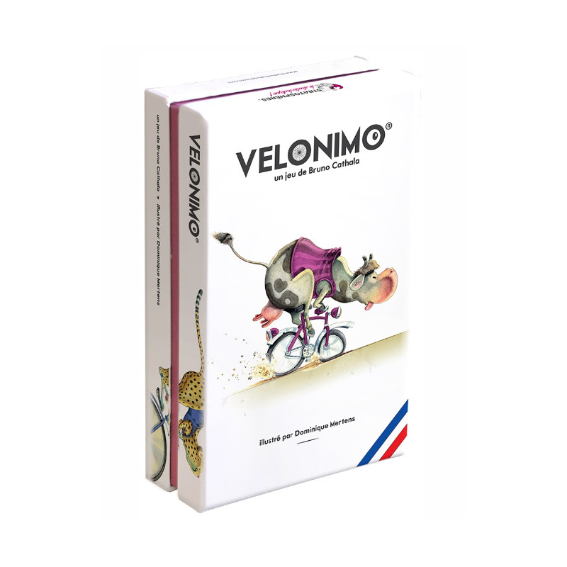 Créez des combinaisons avec vos coureurs et soyez le premier à vous débarrasser de vos 11 cartes. Attention, les lièvres sont très rapides mais ils courent seuls, pas de combinaisons possibles ! Et les tortues, leaders d’équipes,ont une très faible valeur mais vous permettent de piocher chez l’adversaire, et ruiner sa stratégie ! Avec du sang-froid, apprenez à garder vos meilleures combinaisons pour prendre la main au bon moment et remporter l’étape.Avec Velonimo, usez de bluff pour pousser vos adversaires à se défausser trop tôt de leurs meilleures cartes, et partez à la conquête du maillot à Petits- Pois-Carottes !Ce jeu de cartes et de défausse est richement illustré, simple et absolument addictif !Un tuto en vidéo:https://youtu.be/TzYbyxIiI4M