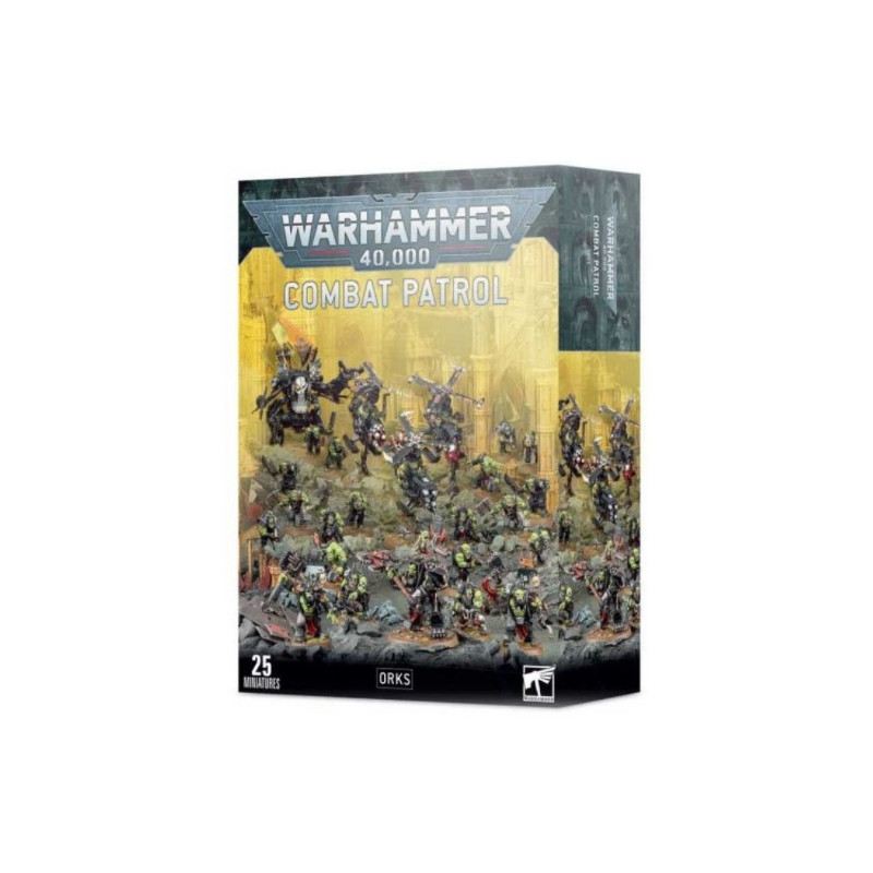 S’il vous plaît de plonger avec enthousiasme dans le maelström du combat, la Patrouille: Orks est le moyen tout trouvé de commencer ou d’agrandir votre armée. Le contenu de cette boîte est spécialement prévu pour vous proposer une force idéalement jouable au format Patrouille, soit environ 25 points de Puissance en figurines.La boîte contient les unités en plastique suivantes à assembler:– 1x Boss de Guerre en Méga-armure– 20x Boyz Orks– 3x Kopters d’la Mort– 1x Dred eud’la MortLes unités ci-dessus sont fournies avec 1x socle rond de 50mm, 20x socles ronds de 32mm, 3x socles ovales de 75mm, 1x socle rond de 60mm, et une planche de décalcomanies orks.Ces figurines sont fournies non peintes et nécessitent assemblage – nous recommandons d’employer la Colle Plastique Citadel et la peinture Citadel.